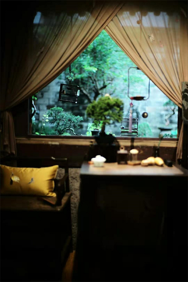 撐開木窗,屋外一片熱鬧, 庭院將房屋與世界連在一起, 人聲、蟲鳴、鳥叫交織成曲。